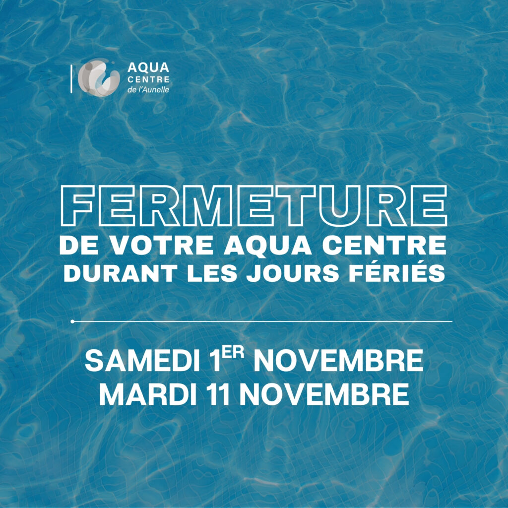 Fermeture les 1er et 11 novembre 28 octobre 2025 Comme c’est le cas chaque année au mois de Novembre, en 2025 comme les autres années, l’Aqua Centre de l’Aunelle sera fermée les 1er Novembre et 11 Novembre, qui sont des jours fériés. A chaque fois, nous vous retrouverons néanmoins avec grand plaisir dès le lendemain, soit […]