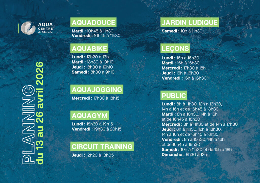 Horaires du 13 au 26 avril inclus